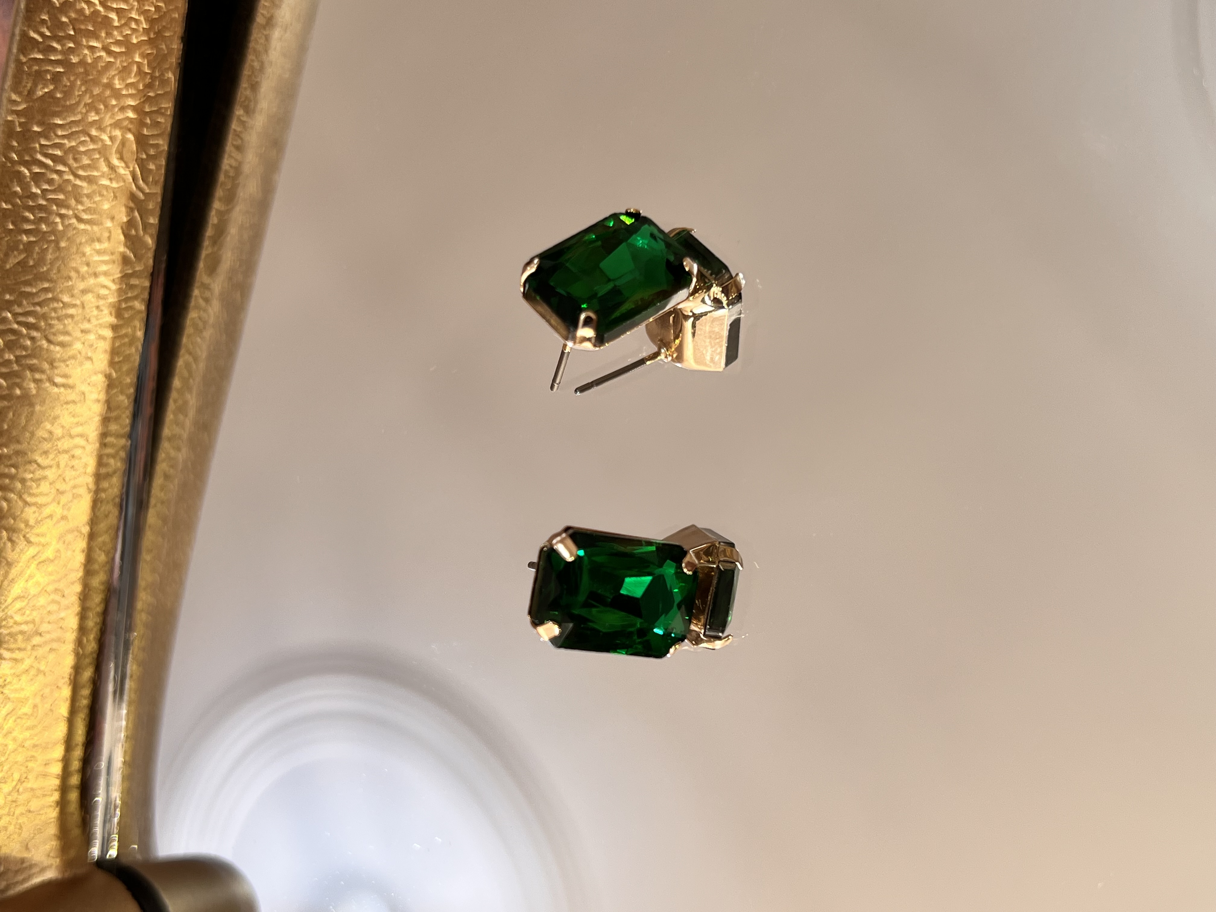 گوشواره میخی نگین سوراسکی سبز یشمی کارناموجود