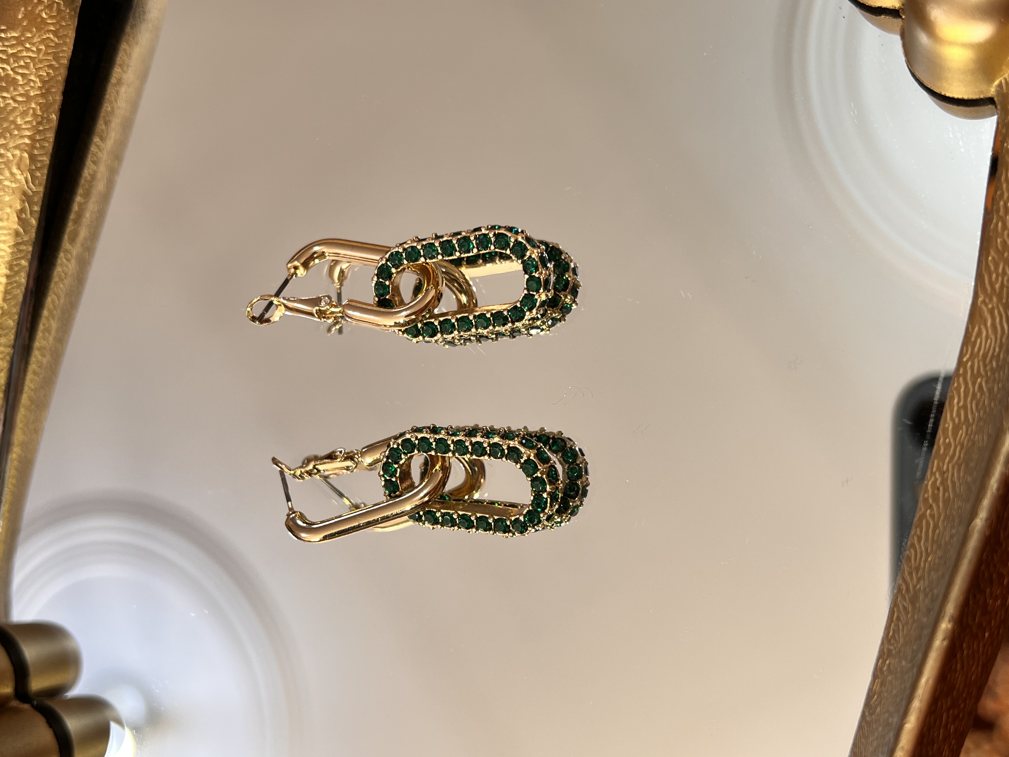 گوشواره آویز بلند نگین زیرکونیا سبز یشمی‌