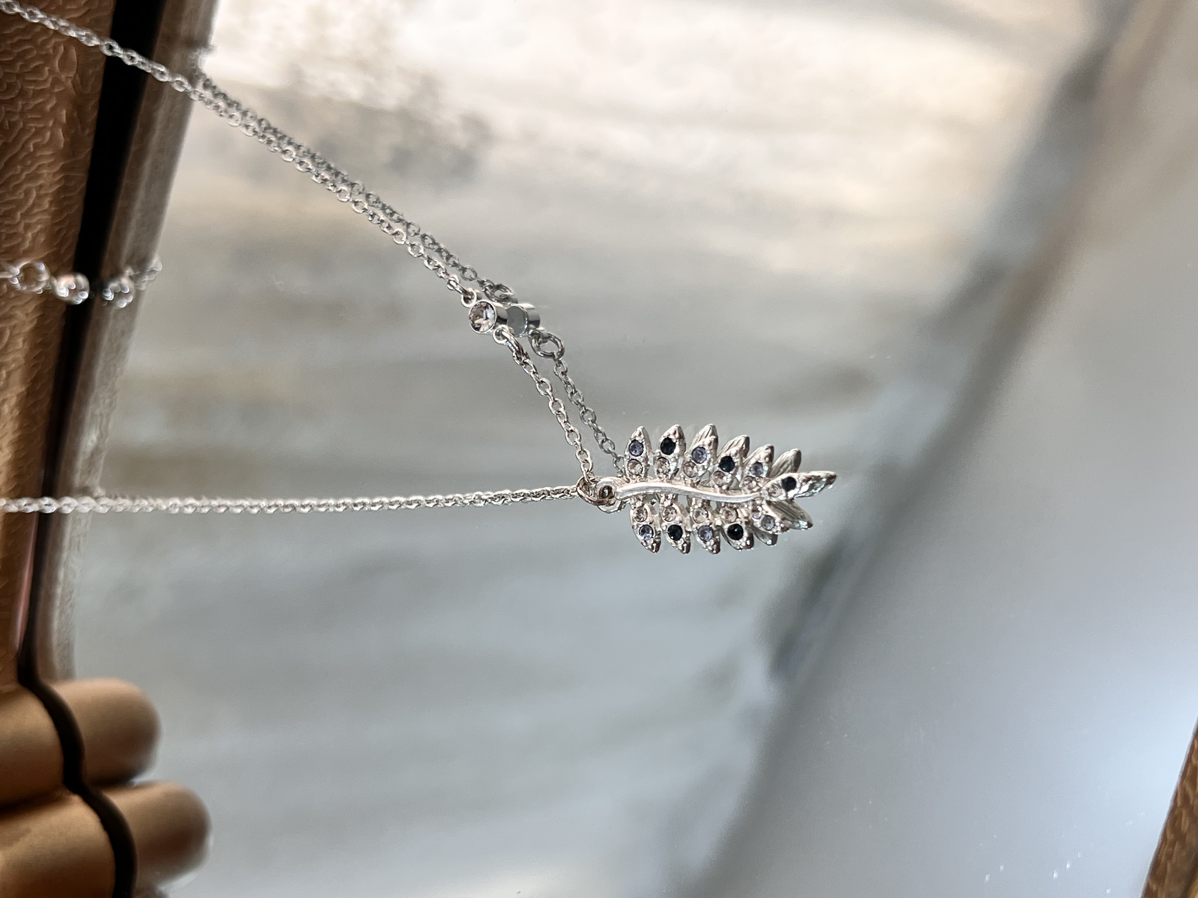 گردنبنداویز برگ نگین آبی کار ابکاری نقره 💎➕✨➕🤍